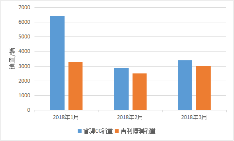 2018年长安睿骋CC与吉利博瑞销量对比