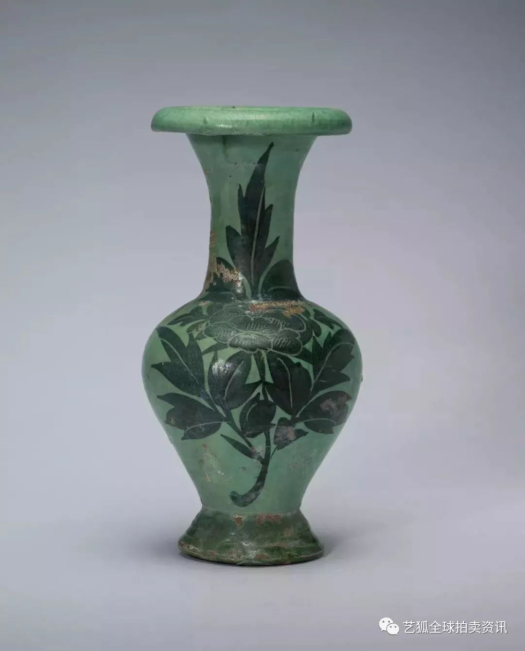 北宋 磁州窑绿釉黑彩牡丹纹瓶