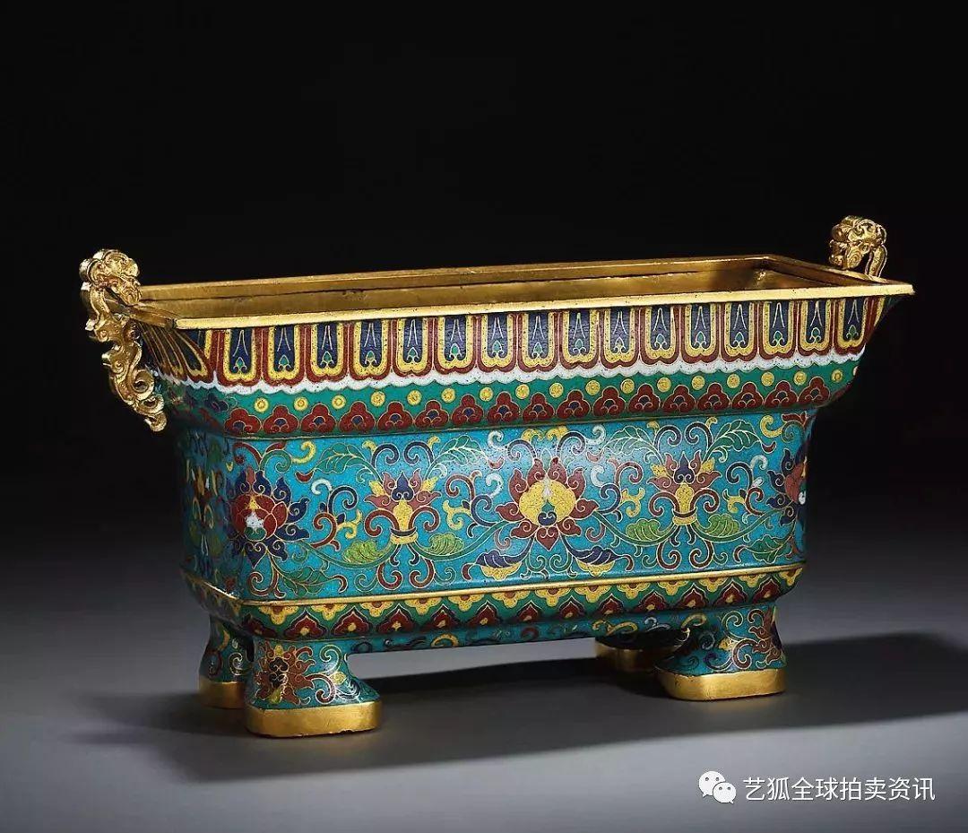 清乾隆 铜胎掐丝珐琅缠枝莲纹龙耳长方炉 「乾隆年製」款
