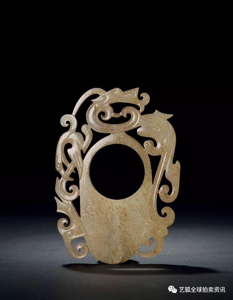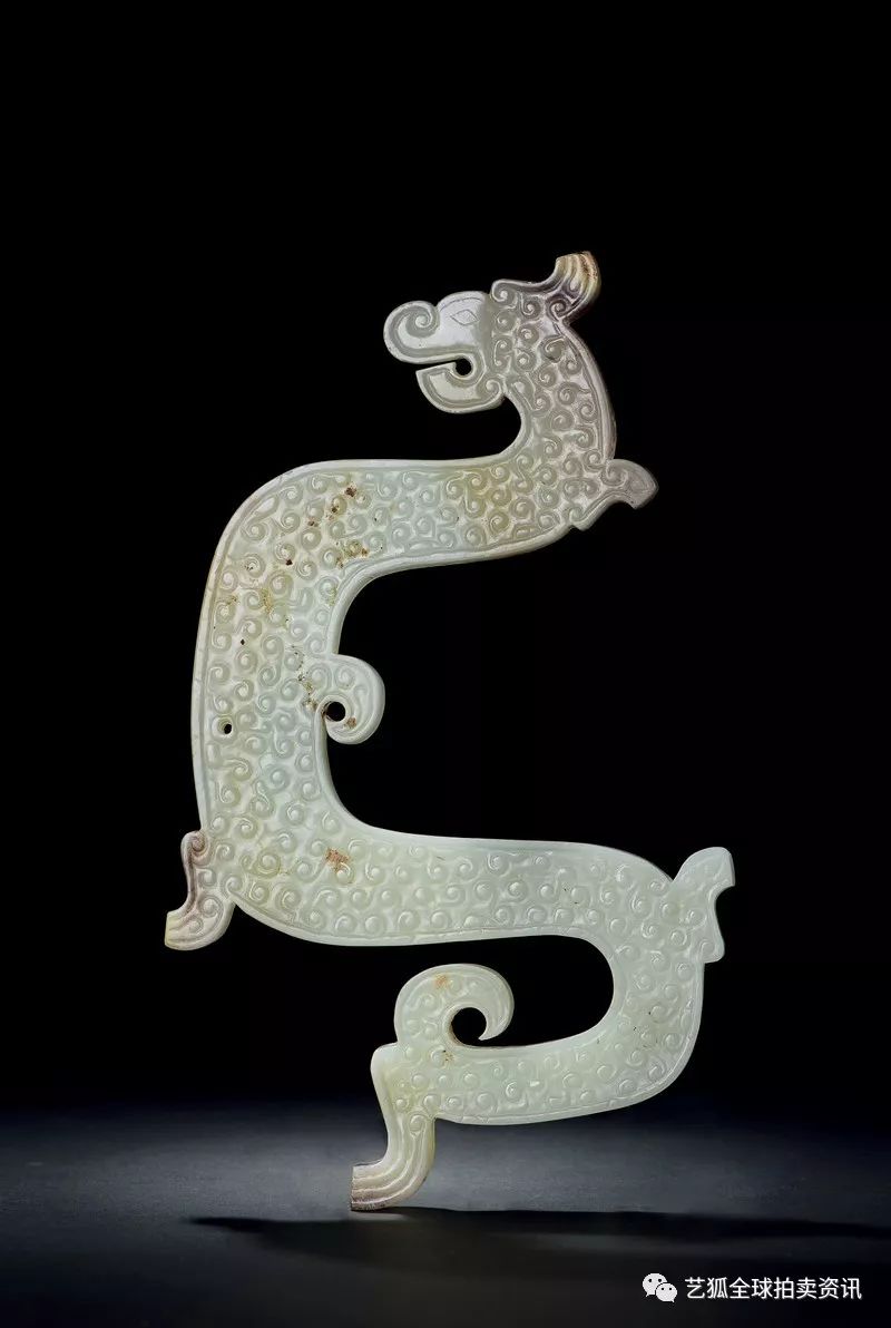 亚洲重要私人收藏鸡心佩,是韘形佩的俗称,由玉韘演变而来。韘是古人拉弓射箭时扣弦用的一种工具,是弓箭手射箭时保护拇指不被弓弦勒伤的器物。汉代许慎在《说文解字》对韘字的解释是:“射决也,所以钩弦,以象骨韦,系著右巨指”。在《诗经·卫风·芄兰》篇中有“芄兰之叶,童子佩韘”。商周时期韘已经是很普遍的器物。到战国时代,韘演化成为扁平状盾形,分成了实用器和佩饰两种,从而出现了“鸡心佩”的形制。此鸡心佩白玉质,光滑细腻,局部受沁,沁色自然。片状略呈椭圆形,中有一圆孔,近似于鸡心的形状。器体扁薄,採用镂空和极细的阴线雕刻出卷云纹、勾云纹,线条流畅、犀利,两侧镂雕出龙凤与祥云纹饰。龙凤造型狭长,採用镂空雕琢,凤鸟长喙锐利,转身叼啄尾羽。蛟龙亦盘曲迴旋,蜿蜒矫健。龙凤与云纹交结勾连,气度不凡。圆孔下部的玉料上,以线刻勾连云纹,与镂空勾连云气韵相连。此佩正面微拱凸显其体态饱满,活泼灵动,线条硬挺而颇具张力,整器打磨精细,匠心独具,是汉代玉器中的难得珍品。