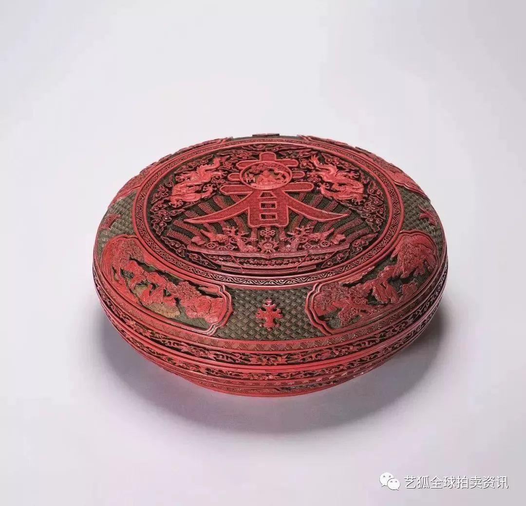 清乾隆 剔彩寿春宝盒 「大清乾隆年製」款、「寿春宝盒」款
