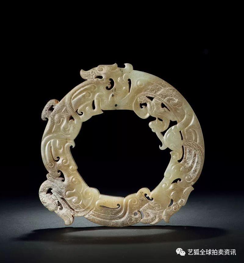 Lot 560 战国至汉 白玉镂雕螭龙环