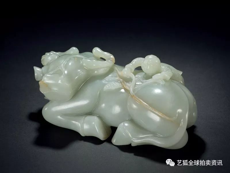 Lot 535 18/19世纪 青玉卧牛童子摆件