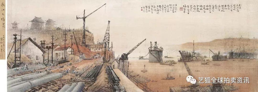 黎雄才 (1910-2001) 长江大桥 镜心 设色绢本 1956 年作