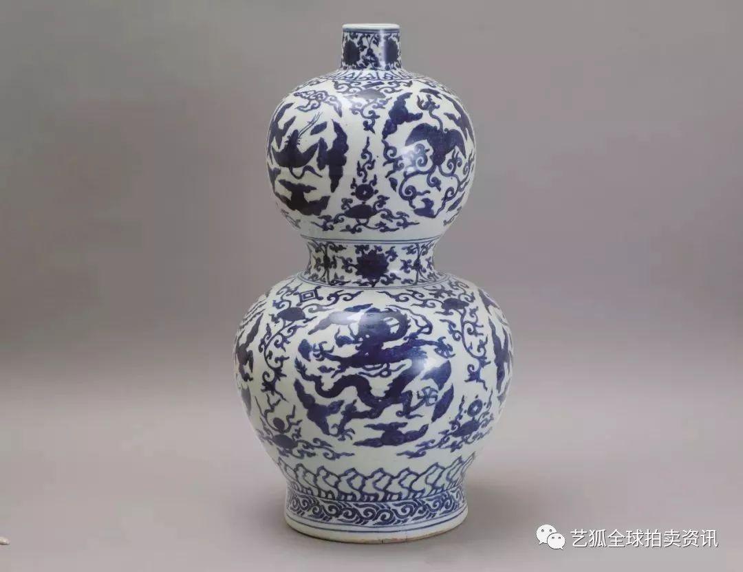 明嘉靖 青花龙凤纹葫芦瓶 「大明嘉靖年製」款
