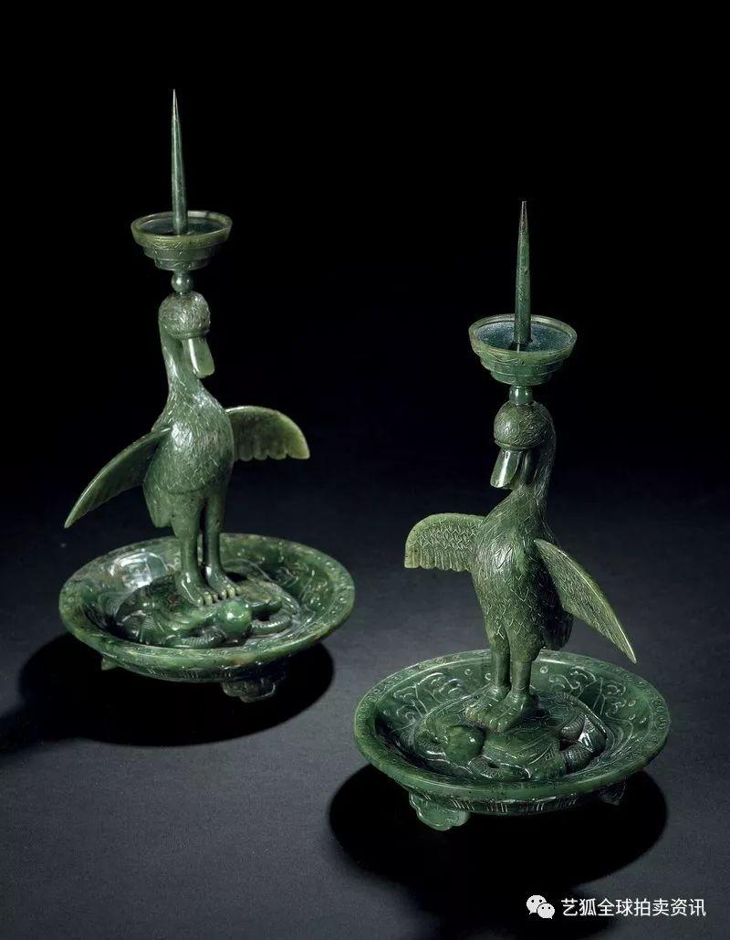 Lot 538 清乾隆 碧玉海晏河清烛台一对