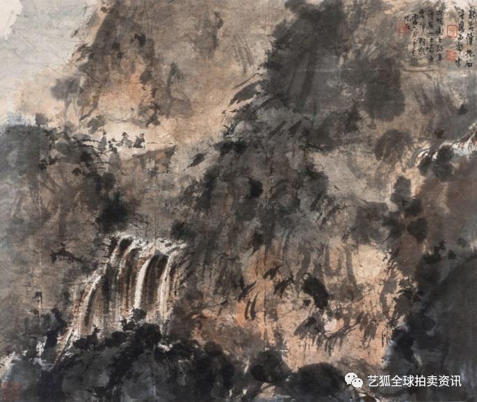 傅抱石 《重岩观泉》 镜心 设色纸本 设色纸本 丙戌1946年作