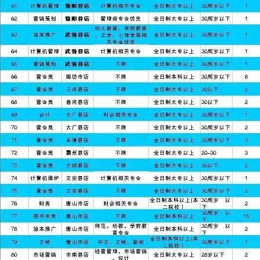 河北分公司招聘 职位
