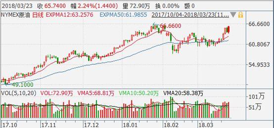中国版原油期货推出之际,国际原油期货价格正不断攀升。上周五NYMEX原油期货收涨1.44美元,涨幅为2.24%,报65.74美元/桶,创八周以来新高,周涨5.34%。欧佩克可能会将其减产协议延长到2019年。此外,伊朗重头受到制裁的风险有所加大。