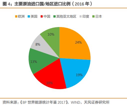 从全球原油进口贸易流向来看,2016年约52%的进口原油流向亚太地区,随着美国页岩油的发展,美国原油进口大幅度减少,预计未来流向亚太的比例将会更高。亚太地区成为世界石油消费最重要的增长点。