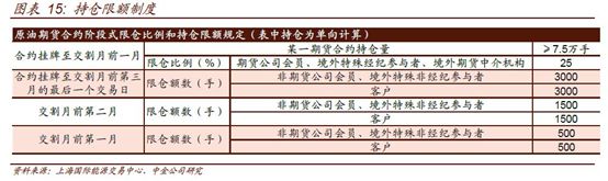 原油期货合约在上市运行不同阶段一般持仓的限仓比例和持仓限额按照下表执行: