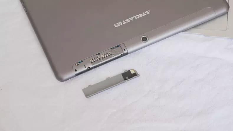 顶部除了摄像头还分布了3.5mm耳机孔和micro-USB口。关注这块和摄像头是分开的,轻轻掰开就是两个sim卡槽和TF卡槽。这台平板支持Wi-Fih和双4G网络,外出的时候用4G,有Wi-Fi的时候连Wi-Fi,到哪都不会耽误使用了。