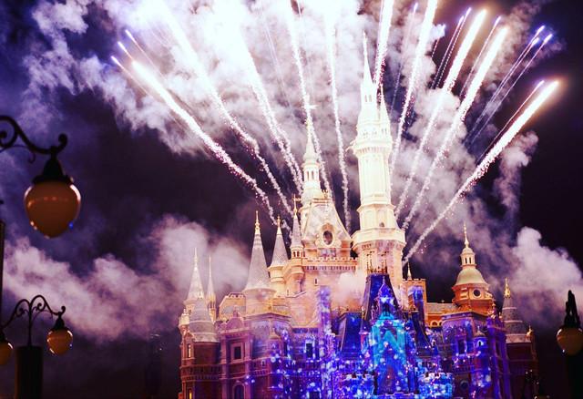 #梦幻烟花秀#20分钟的演出很多人提前1-2小时就在城堡前等待,烟花搭配城堡的光影十分梦幻。