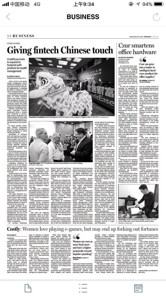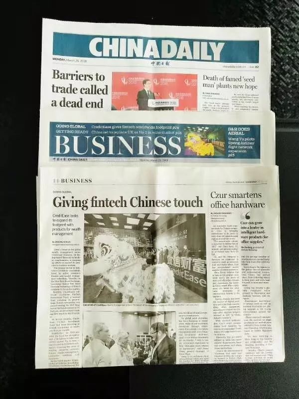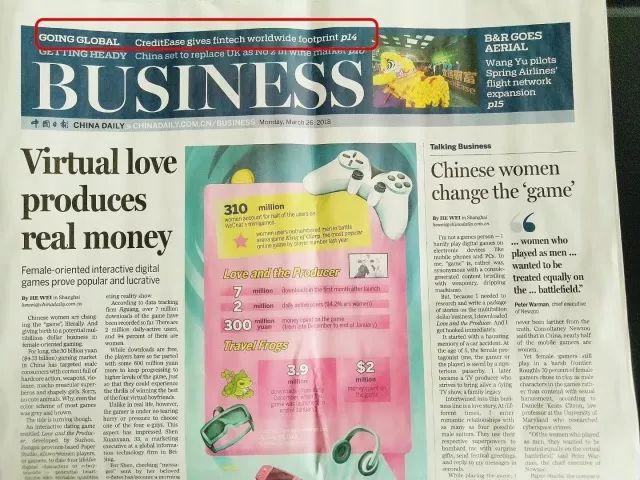 在全球财富管理行业蓬勃发展之际,宜信也正势不可挡地将足迹逐步遍布全球。最近,中国唯一国家级英文日报——中国日报 China Daily 就对此用超大幅的版面进行了报道。