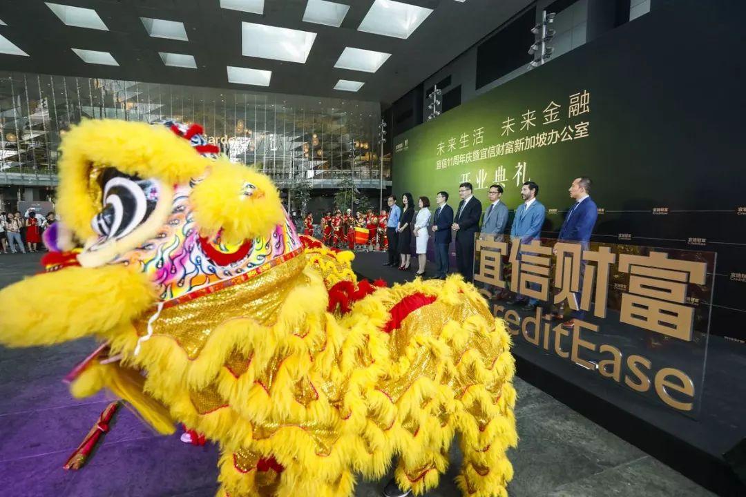 Executives of CreditEase Wealth Management attend the launch of the company's Singapore office in June 2017. [Photo provided to China Daily]