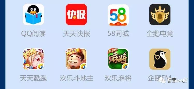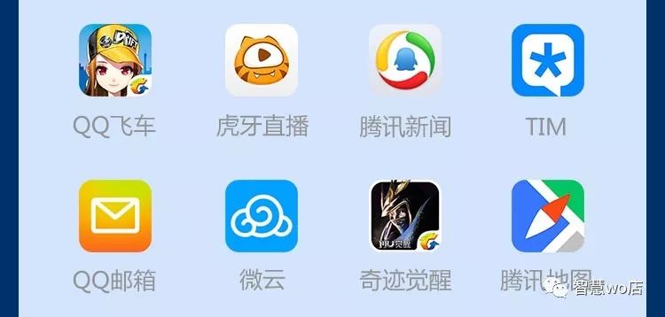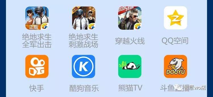 微信、手机QQ、QQ轻聊版、TIM、QIM、腾讯视频、QQ音乐、应用宝、腾讯手机管家、QQ浏览器(包含第三方网站)、QQ空间、QQ邮箱、腾讯新闻、QQ阅读、腾讯微视、水印相机、腾讯动漫、QQ创意相机、QQ情侣、腾讯体育、看房、QQ影像、QQ提醒、易迅彩票、QQ美食、企鹅FM、腾讯操盘手、微桌面(主题壁纸美化)、Q立方桌面、快报、腾讯地图、微信电话本、手游宝、电池管家、QQ国际版、微云、相册管家、手机QQ影音、QQ彩票、NOW直播(腾讯)、腾讯桌面、腾讯充值、腾讯路宝、全民K歌、腾讯校猿、企鹅辅导、腾讯课堂、腾讯直播、小企鹅乐园、腾讯游戏人生、企鹅电竞、QQ同步助手、腾讯WiFi管家、企业微信、微信读书等其他腾讯系应用。