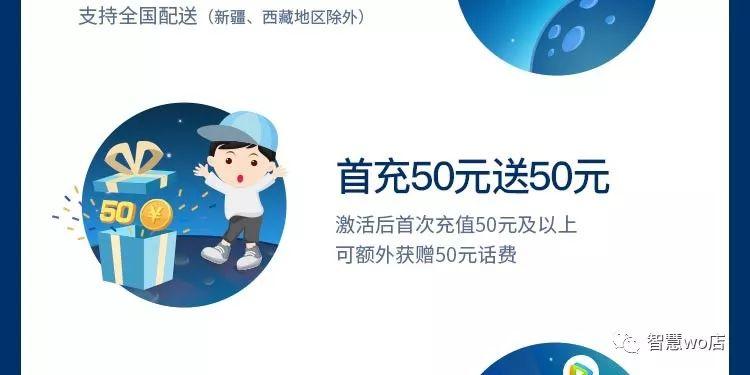 ·首充50元及以上,送50元话费,每个用户仅可享受一次首充优惠首充话费立即到账,赠送话费次日到账。充值金额与赠送话费按实际话费1:1扣费。赠送话费不能抵扣国际长途、国际漫游和SP业务费用。
