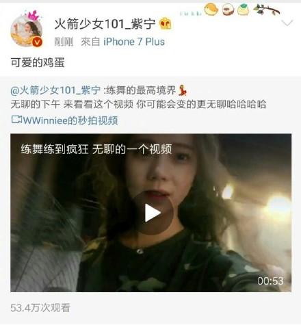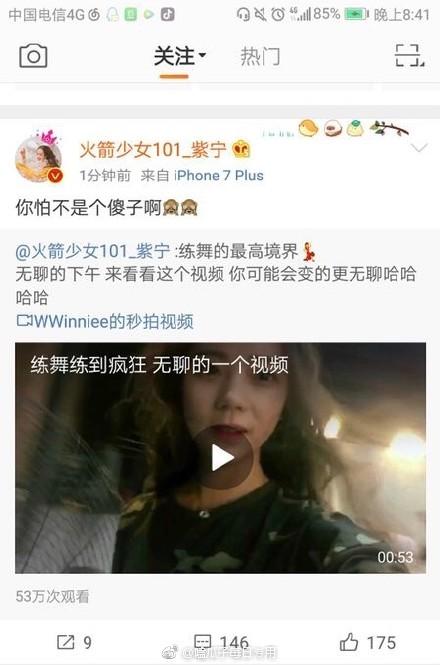 刚成团没两天的时候,紫宁还在微博上点赞了粉丝内涵队友杨超越的微博。说实话,要想当明星,还是先让团队把这姑娘的微博收了吧。
