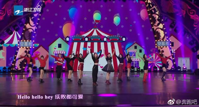 第二次公开表演,是前几天的《跑男嘉年华》,唱的还是她们比赛时候的主题曲,又被网友扒出来假唱,还是非常不走心的假唱,甚至能听到陈芳语这些淘汰选手的声音,好歹让他们11个人单独录一版嘛。
