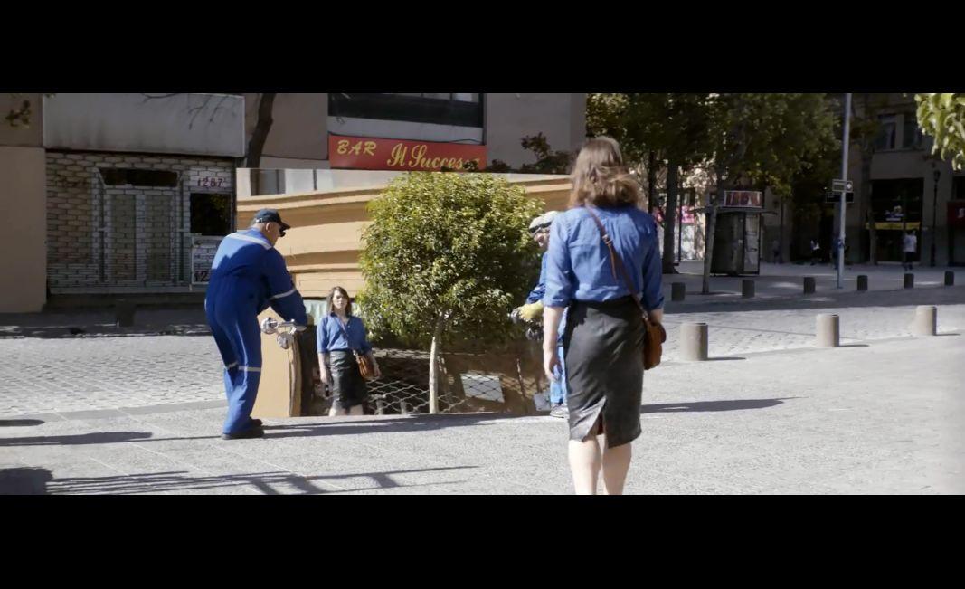 片中最具典型性的一幕是,玛丽娜走在街上,看见两个男人在搬运一面巨大的镜子。