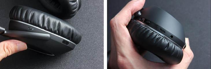 其一,与其他耳机不一样的地方是,PXC550 没有设计电源开关。当你把 PXC550 正常带在耳朵上耳机便会正常启动,当把 PXC550 折叠耳机便随即关闭。实际上,在 PXC550 的开关设计在耳机旋转处。
