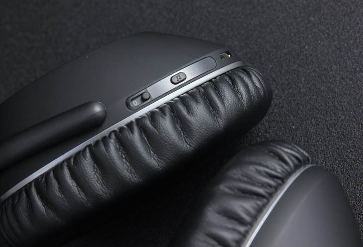 此外,所有接口均设计也在耳机右侧。其中包括顶部蓝牙开关功能,底部耳机感应、降噪开关、音乐风格、指示灯、Micro USB 充电口、2.5mm 音频线。