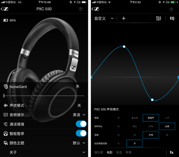 通过 APP 你可以直接对 PXC550 的所有功能的开启进行控制,其中通话增强和智能暂停这两个实用的功能智能通过 APP 进行开启与关闭。智能暂停能够使音乐在离开耳朵后立即暂停,当你带上耳机后音乐便会在上次中断处继续*放播**。在实际体验 PXC500 的语音通话清晰度体验不错,而通话增强则是增加语音对话时音量的大小,特别是在乘坐列车的时候这个功能显得尤为重要。