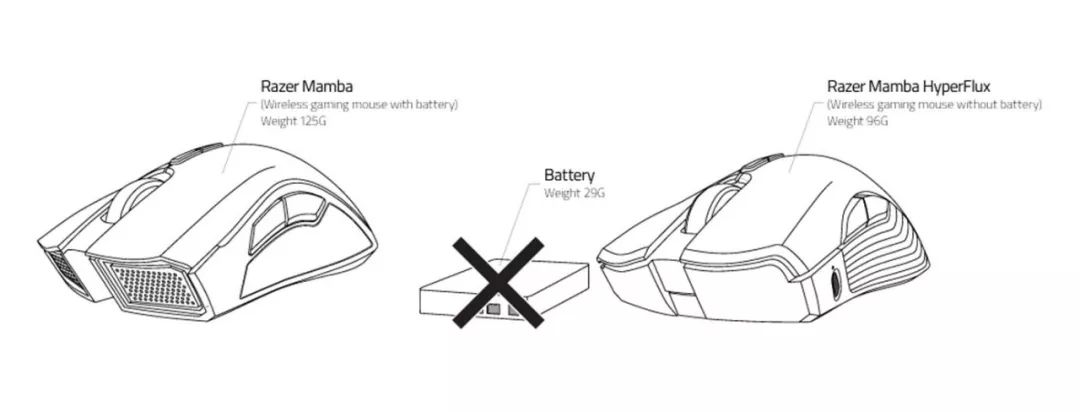 曼巴超级版将传统无线鼠标内部的电池替换为一颗电容,这一操作减轻了29g,使曼巴超级版的整体重量做到了96g,甚至比许多有线鼠标还轻。
