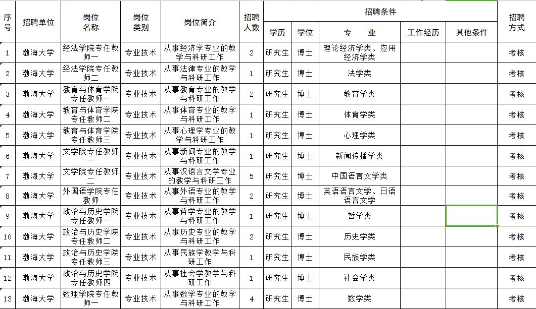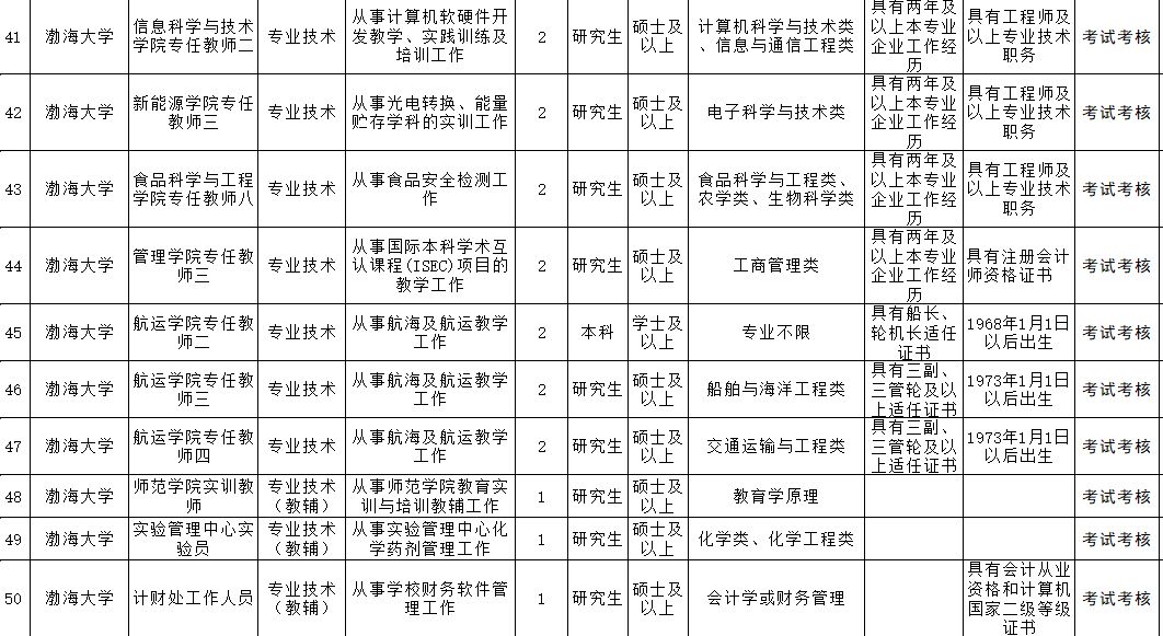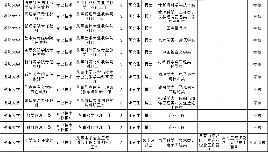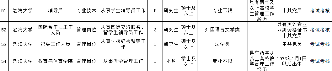 渤海大学招聘119名工作人员