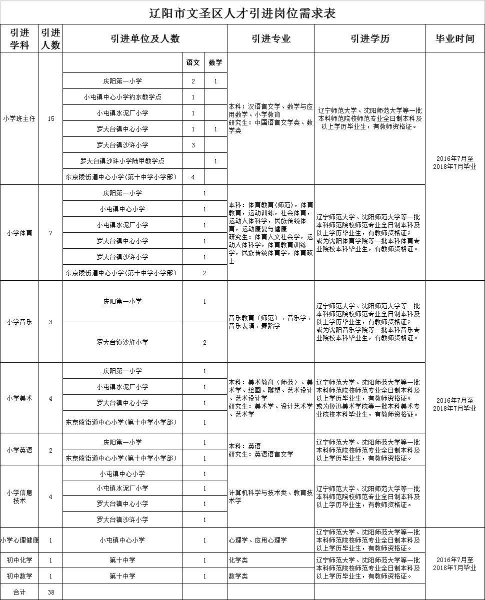 辽阳文圣区招聘教师38人