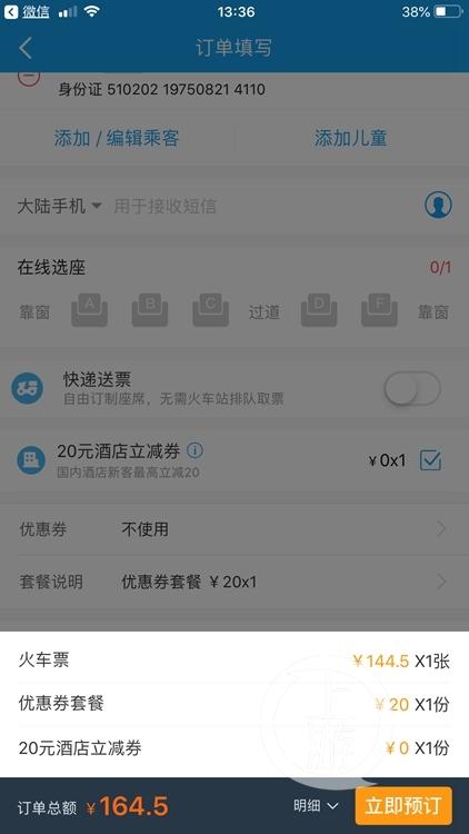 在携程、去哪儿购高铁票,同样有20元优惠套餐券或优先出票套餐,都被隐藏在了第三层菜单。