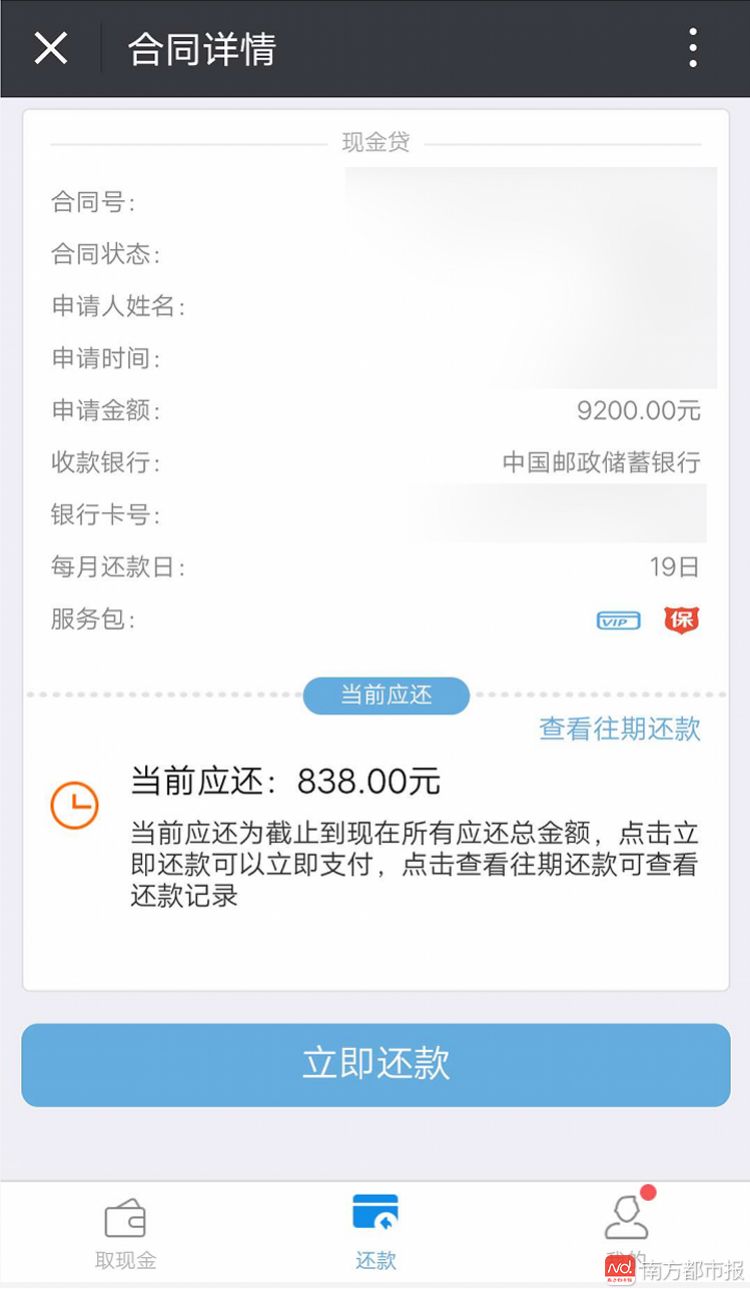 合同显示,张女士只拿到了9200元*款贷**本金。