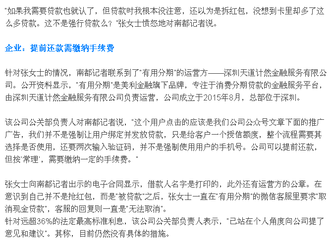 张女士联系“有用分期”的客服要求提前还款,遭到拒绝。随后,张女士通过银行找到“有用分期”的官方帐号,把9000多元本金汇了过去,同样被告知是徒劳。