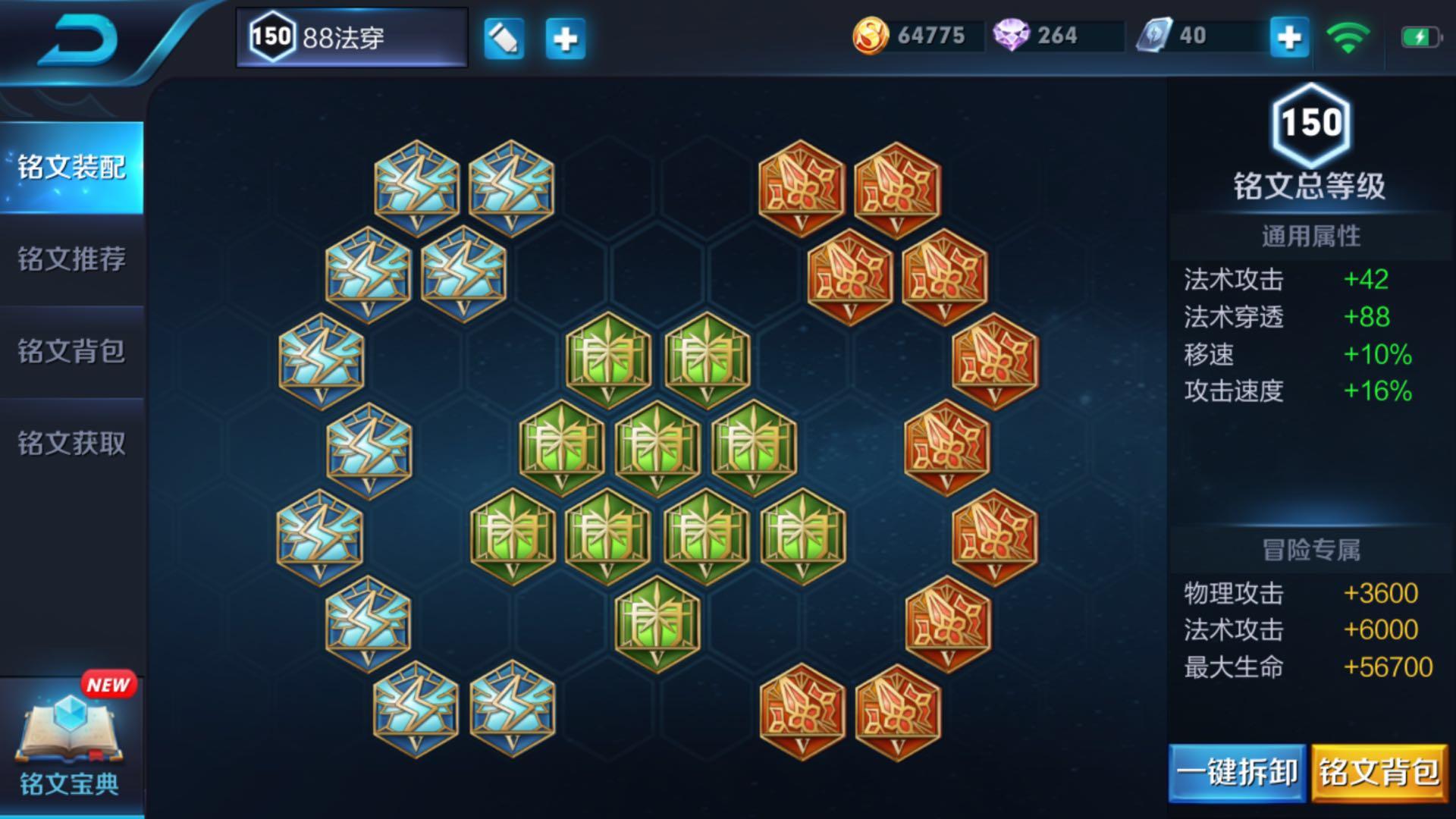 铭文法穿只有88点,心眼6.4,10个64,梦魇2.4,10个24,加起来就是88点,