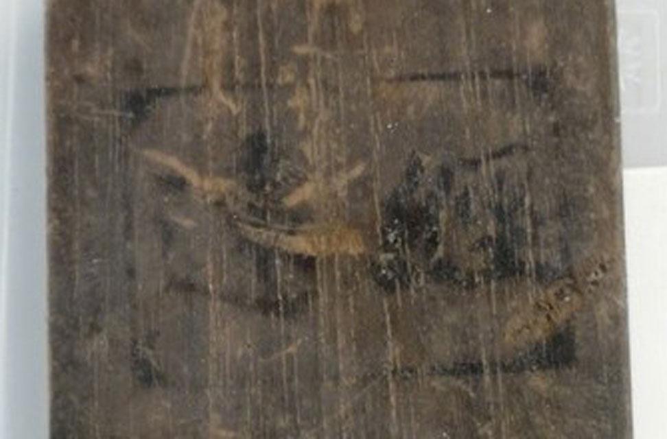 经远号沉没一百二十年后的2014年,其残骸在大连老人石海域被发现,跟着水下照片首次公布。今年9月15日,考古队员在水下发现了悬挂于舰舷外壁的木质髹金“经远”舰名字牌,清理出了*弹子**、炮弹等*器武**和工具。