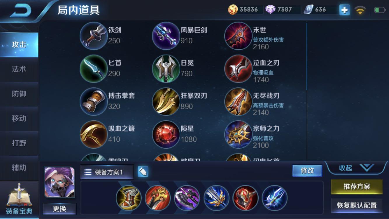无尽战刃对阿轲的伤害提升是最大的,破军是为了可以更加轻松的收割残血。后期发现打不动坦克的时候可以将暗影战斧换做碎星锤,*刀名**司命换成复活甲。