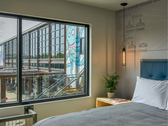 这家新的精酿啤酒酒店拥有32间客房,其中包含8间豪华套房,每日配有欧陆式早餐,此外还有健身设施,外卖食品市场,以及可以进行游戏和活动的大堂酒吧。