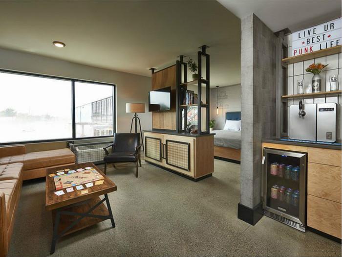 此外,哥伦布DogHouse的每个房间都有一个迷你酒吧,配有BrewDog beer啤酒,每个房间都有一个BrewDog水龙头。在这家独特的酒店里,客人们肯定不需要闹钟,因为他们每天醒来都会闻到啤酒的新鲜香味。但这些啤酒都不是免费的,但当地的哥伦布咖啡套装是免费的。