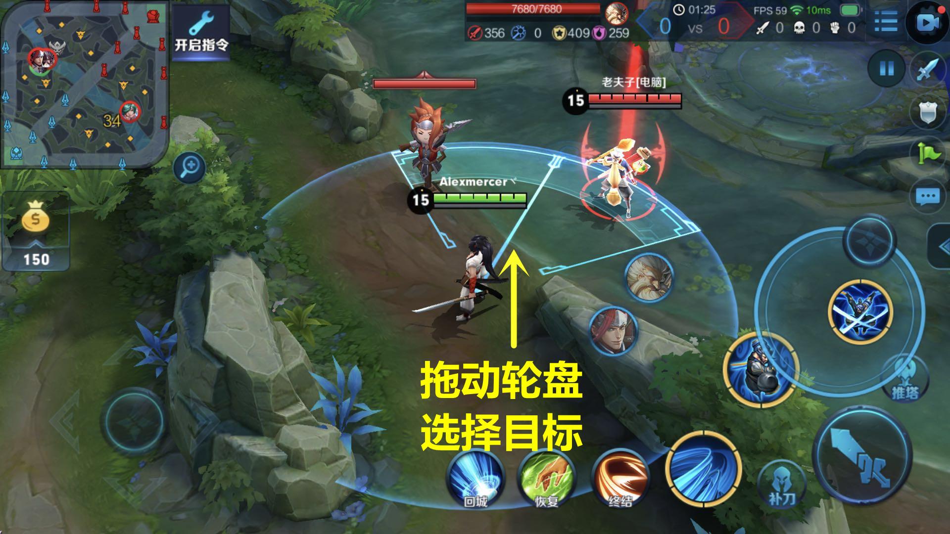 特别是在使用宫本武藏大招、东皇太一大招、李元芳一技能时,一定要学会使用轮盘来选择攻击目标。