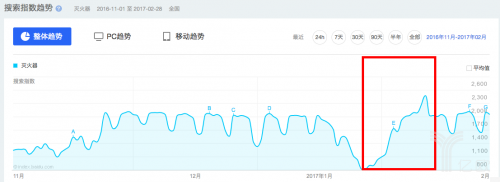 要选择高速增长的拐点品类。在互联网上,每年都有一些品类经历缓慢的培育阶段后,会面临爆发式增长的拐点,而在拐点附近进行切入是最好时机,比如15年的投影仪和卷发棒,16年的保险柜。而灭火器同样如此,伴随汽车年检开始强制灭火器检查和人们防火意识的提升,最近2年天猫灭火器每年增长率超过100%,甚至在去年达到了1000万个以上,搜索词增速也达到每年100%。