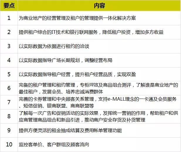 需要导入专业摩尔管理软件系统,信息能多种方式导入,数据有效共享,统一租户租约管理、往来管理、会员管理,有效指导广场的经营策划,通过追踪顾客消费信息了解顾客需求、指导租户经营。