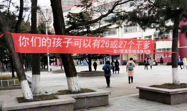 3 月 7 日女生节,中国一些高校里照例会多出很多横幅——男生们在这一天会对同系同专业或者同班的女生集体表白。你可以把它理解成是男生们一次调皮的玩笑,偶尔追求语不惊人死不休的效果。