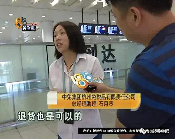 中免集团杭州免税品有限责任公司总经理助理 石月琴:“如果实在接受不了,退货也是可以的,那我巴不得(现在能退吗?)可以。”
