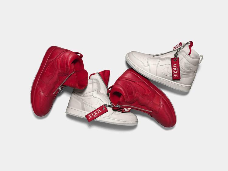 这是她为耐克旗下 Jordan 品牌和 Vogue 杂志最新合作的联名鞋款拍摄的广告内容,该系列一共两款,分别有红白两种配色,鞋底 AWOK 四个字母是 Anna 的手写笔迹。
