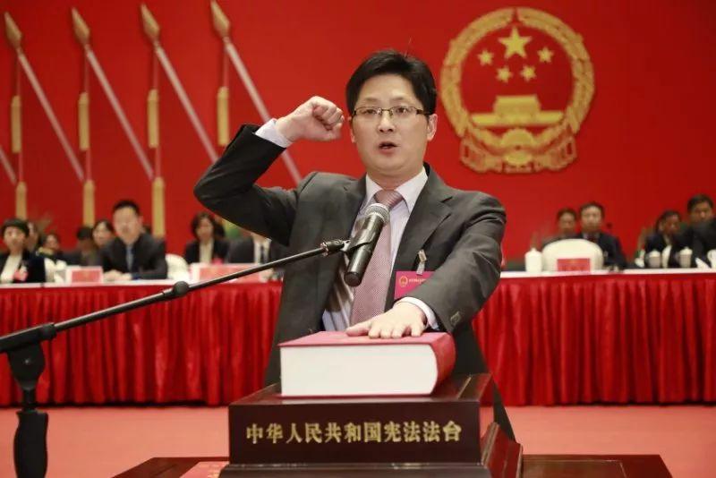 会议举行了宪法宣誓仪式,在区人大常委会主任沈成富的主持下, 新当选的区长张红军面对*旗国**,手按宪法庄严宣誓。