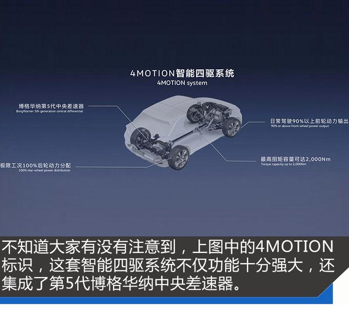 要特别说一下探歌配备的4MOTION智能全时四驱系统和Active Control 多路况驾驶模式选择系统。在中央差速器的分配下,探歌在正常道路行驶中,前轮的动力输出为90%,后轮则为10%,这样就基本与前驱车没什么区别,燃油经济性能得以保证。遇到艰难路况时,系统可根据路面条件智能分配前后轮动力输出比,甚至可实现完全后驱行驶。