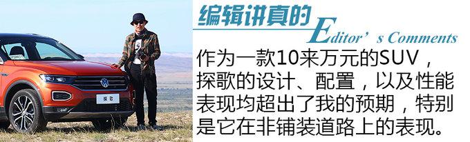经过一天的试驾体验,让我有机会感受到探歌在综合路面下的表现。如果让我挑出探歌身上有哪点是最让我印象深刻的,那就是它如同轿车般的悬架调校和车内良好的静谧性,这针对一款既要兼顾日常城市通勤,还要带你“翻山越岭”的SUV来说,是最大的优点。而如果非要让我挑出它存有哪些软肋,或许就是1.4T发动机了,由于排量所限,后段的动力输出会较为线性。但身为一款紧凑级SUV,谁又会天天开着它和别人飙车呢?而且别忘了,它还有运动模式和S挡的双重选择。