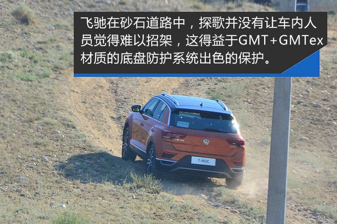 在原生态非铺装路面上行进,我们把驾驶模式调至越野选项,转向系统和油门响应变得稍微沉重一些,这时探歌真的就像官方宣称的“它是一部能跑拉力赛的SUV”一样,甚至可以用“如鱼得水”的来形容它的表现,而且韧性十足的悬架系统,很好的过滤了路面上的坑洼,减少了坑洼针对车辆的冲击,致使车内人员没有出现过大的颠簸,仿佛处于铺装道路上。