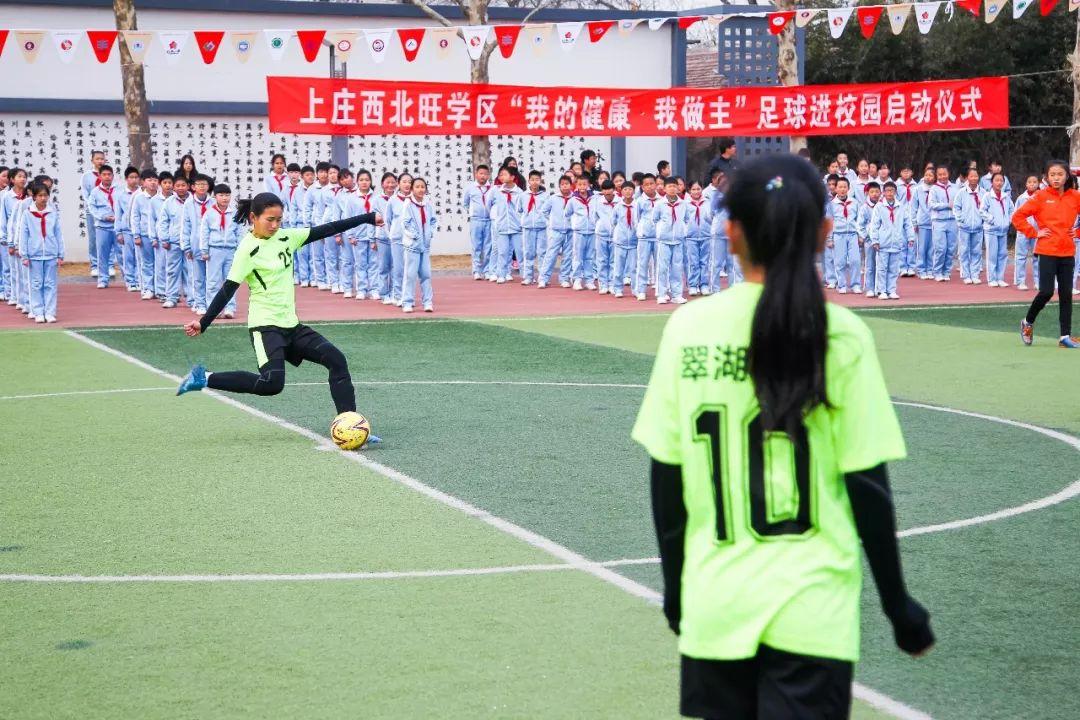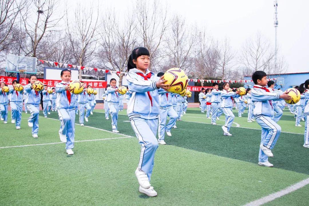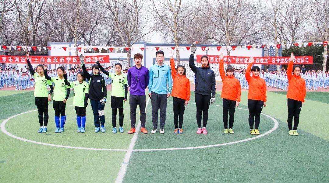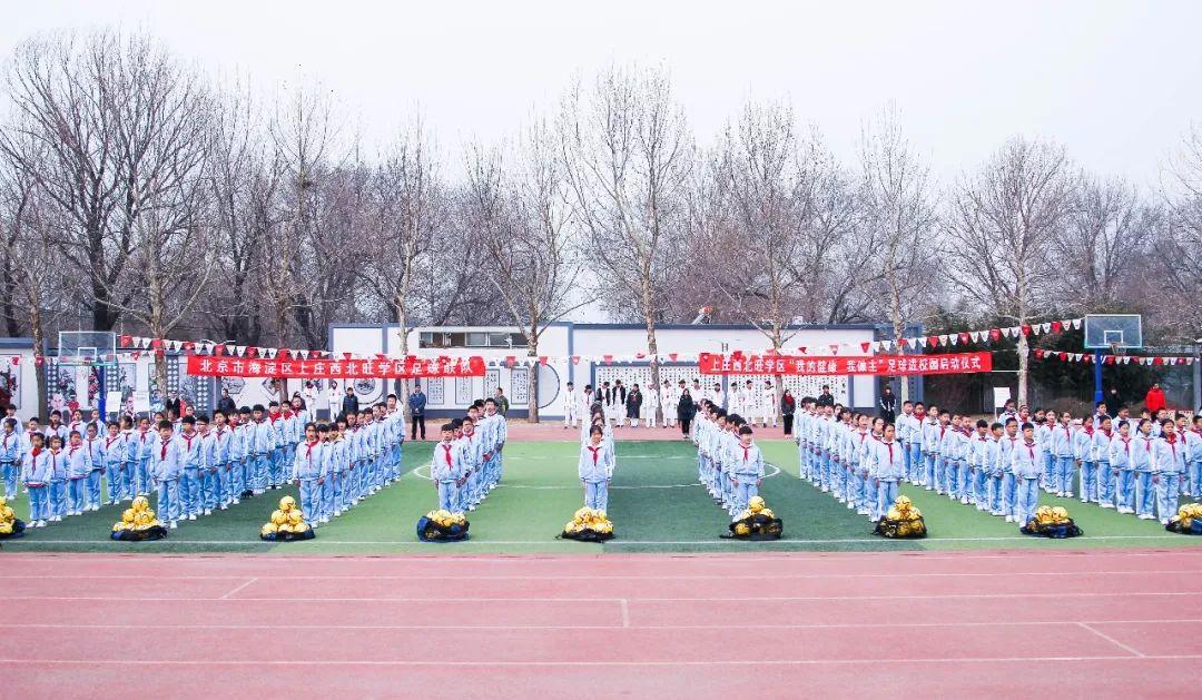 3月21日,在海淀区永丰中心小学,随着学区内11所学校接过足球训练营旗帜,上庄西北旺学区足球进校园活动正式启动。