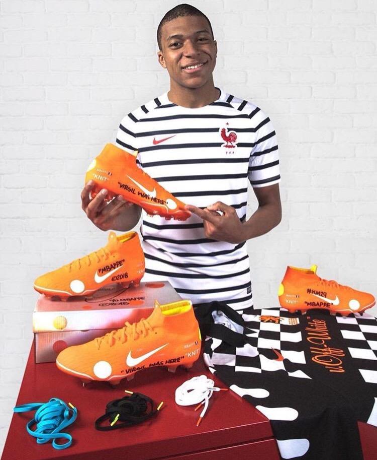 随着当值主裁判的一声哨响,昨晚举行的世界杯决赛正式落幕,法国队终于在时隔 20 年之后重头夺冠。作为法国队夺冠的首要功臣,年仅 19 岁法国前锋 Kylian Mbappe 打入两球,并且夺得了本届世界杯的最佳年轻球员奖,而与之对比的则是 1958 年 17 岁球王贝利在决赛取得进球。另外关于这位未来之星,除了下一个贝利之称外,昨晚他脚下的球鞋也是备受关注。射入两球的他正式穿上了 OFF-WHITE x NIKE Mercurial Vapor XII 360,并且随后主理人 Virgil Abloh 也在第一时间展示了当日 Kylian Mbappe 上脚照片。另外一方面,今年可以说真的是属于 Virgil Abloh 的 2018!